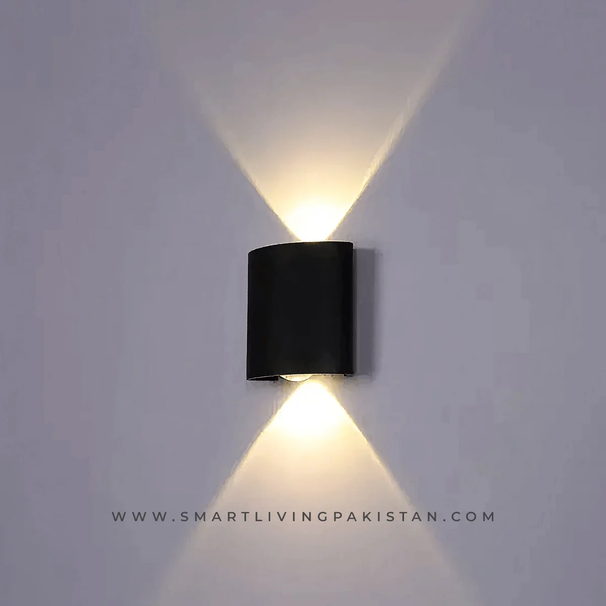modern LED wall light in Pakistan, featuring a sleek aluminium black body and elegant up-down lens lighting. Designed for both indoor and outdoor use, this wall mounted light delivers warm illumination, long life performance, and IP65 waterproof protection—perfect for modern homes and commercial spaces.
