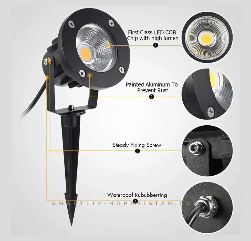 Enhance your outdoors with this 12W Garden Light in Pakistan – Waterproof LED Light. Built with durable black aluminium, IP65 waterproof protection, and a 180° adjustable head, it’s perfect for lawns, pathways, and landscapes.